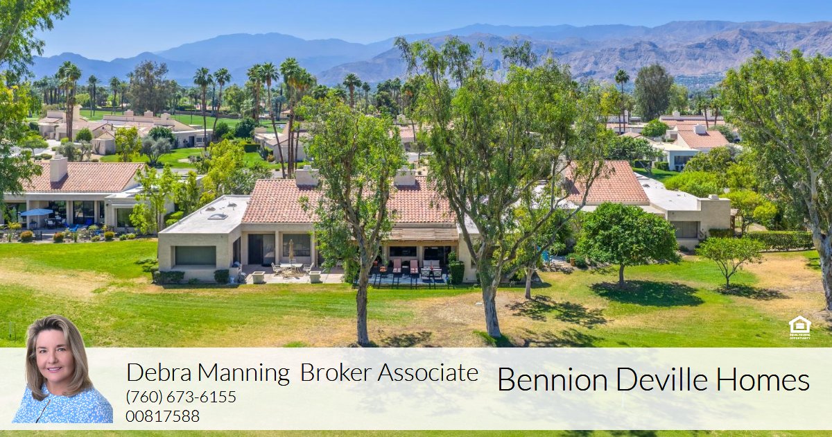 This beautifully maintained condo home located within the highly sought-after guard-gated Mission Hills Country Club. The main no-step living area is both dramatic and inviting, highlighted by a vaulted wood-beam ceiling, ceramic tiled flooring, bar with beverage refrigerator, gas fireplace, and open sightlines that frame the panoramic golf course views. Main bedroom suite is a serene retreat with breathtaking picture window with serene views and direct access to the terrace. Updated bath has double vanities, and good closet space Generous guest bedrooms one of which is used as convertible den with walk-in closet and access to patio. Solar Panels offer energy savings, fully furnished just move in.
